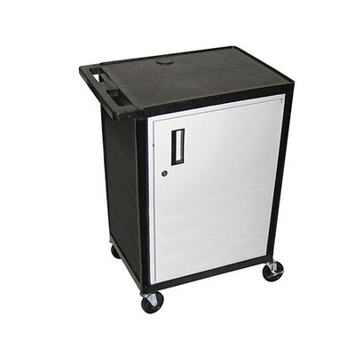 34" High Locking Video Console?LEF34C-B Features: -4'' casters, two with locking brake.-Set of 2 keys. Construction: -Door is heavy gauge steel with full piano hinge.-Molded plastic construction with steel cabinet. Assembly Instructions: -3-outlet, 15' surge suppressing electric assembly.-Assembly required. Dimensions: -Weight: 61 lbs.-Dimensions: 34'' H x 24'' W x 18'' D.