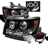 High Performance Xenon HID Chevy Suburban 1500/2500 13 / Chevy Tahoe 13 / Avalanche 13 Halo LED ( Replaceable LEDs ) Projector Headlights with Premium Ballast - Black with 4300K OEM White HID