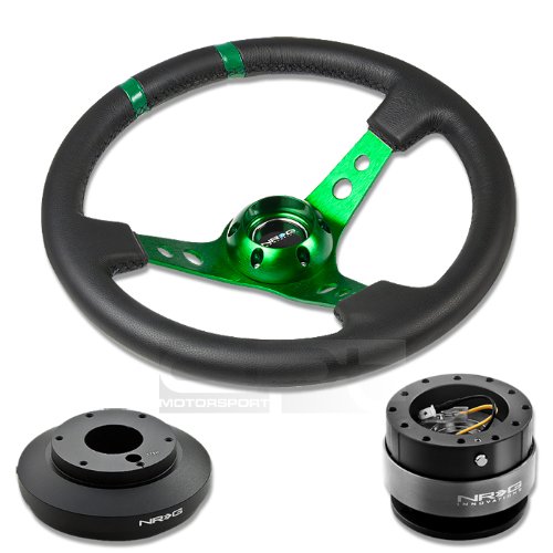 NRG-SRK-175H+016R-GN+200BK, NRG Innovations 13.78" 350mm 3" Deep Dish Style Black Leather Green Center Marking Green Spokes Racing Steering Wheel Combo with 6 Hole Short Hub Adapter with Gen 2.0 Black Quick Release Kit SRK-175H