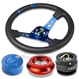 | ✚✚✚ NRGSRK130HRD+200CF+101BL+016RBL, NRG Innovations 13.78" 350mm 3" Deep Dish Style Black Leather Blue Center Marking Blue Spokes Racing Steering Wheel Combo with 6 Hole Short Hub Adapter with Gen 2.0 Carbon Quick Release with Blue Lock Hub Kit SRK-130H NRG Quick Release features many options that conventional ball-locking quick release system do not. It is specially engineered with raised sections to prevent the scratching and stretching of the hub while a self locking feature adds increased safety and functionality. Features racing styled for added style and look. Each unit is made from the highest quality aircraft grade aluminum and is anodized for maximum durability and finish.