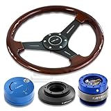 NRG-SRK-140H+200BL+101BL+015RBK, NRG Innovations 13" 330mm Deep Dish Style Wood Grain Black Spokes Racing Steering Wheel Combo with 6 Hole Short Hub Adapter with Gen 2.0 Blue Quick Release with Blue Lock Hub Kit SRK-140H